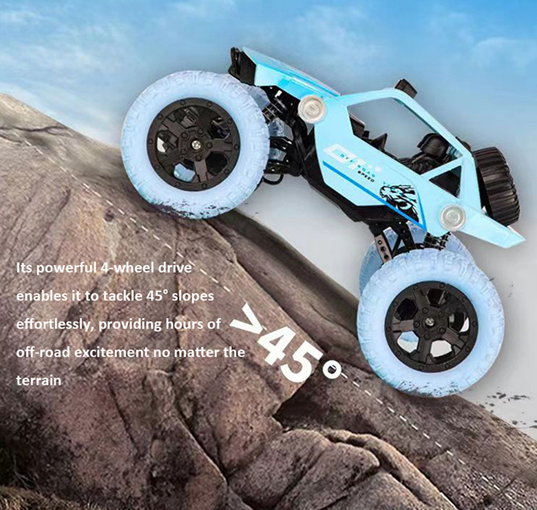 - All-Terrain Off-Road RC Cars- The amphibious remote control car is quipped with durable rubber tires and high-grip treads, this rc crawlers can easily conquer any surface, from grassy lawns to sandy beaches, rocky paths, or even your backyard pool. Its powerful 4-wheel drive enables it to tackle 45° slopes effortlessly, providing hours of off-road excitement no matter the terrain